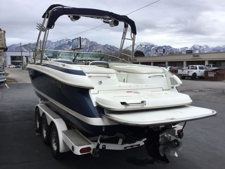 Must have bimini set up, tower and extended swim step as shown in photos.